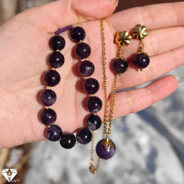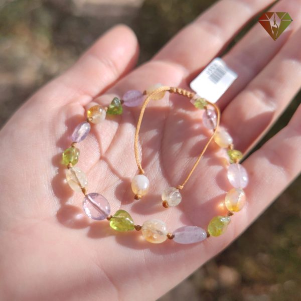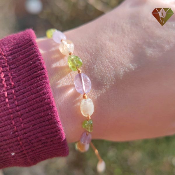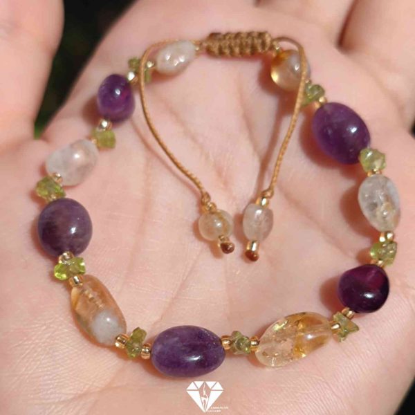 دستبند زنانه آمیتیست و سیترین و زبرجد(دستبند ثروت)